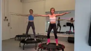 The term “rebounding” describes working out while jumping on a miniature trampoline.
